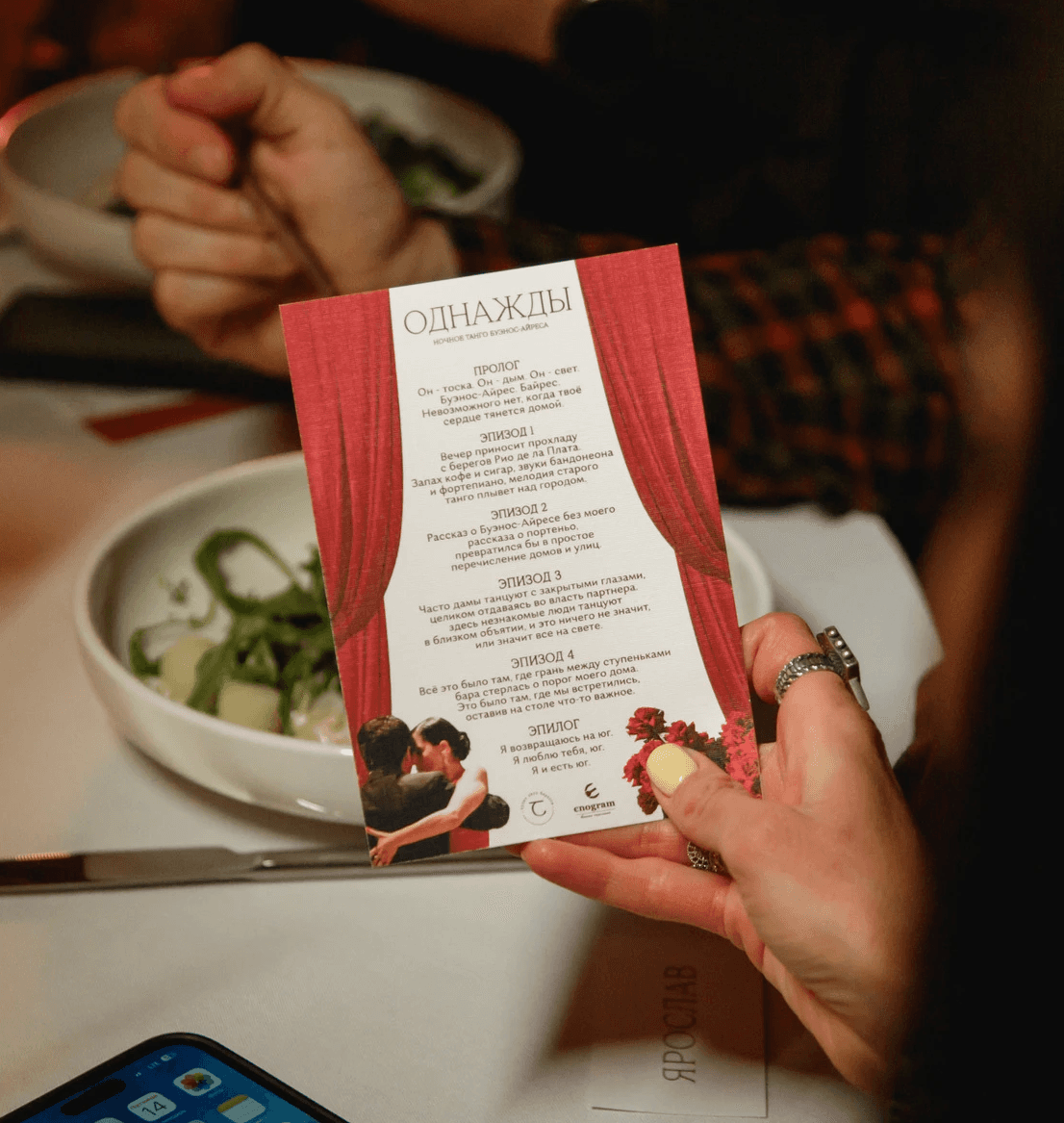 Иммерсивный ужин посвящен истории музы Астора Пьяццоллы, Марии, которая возвращается в родной Буэнос-Айрес.